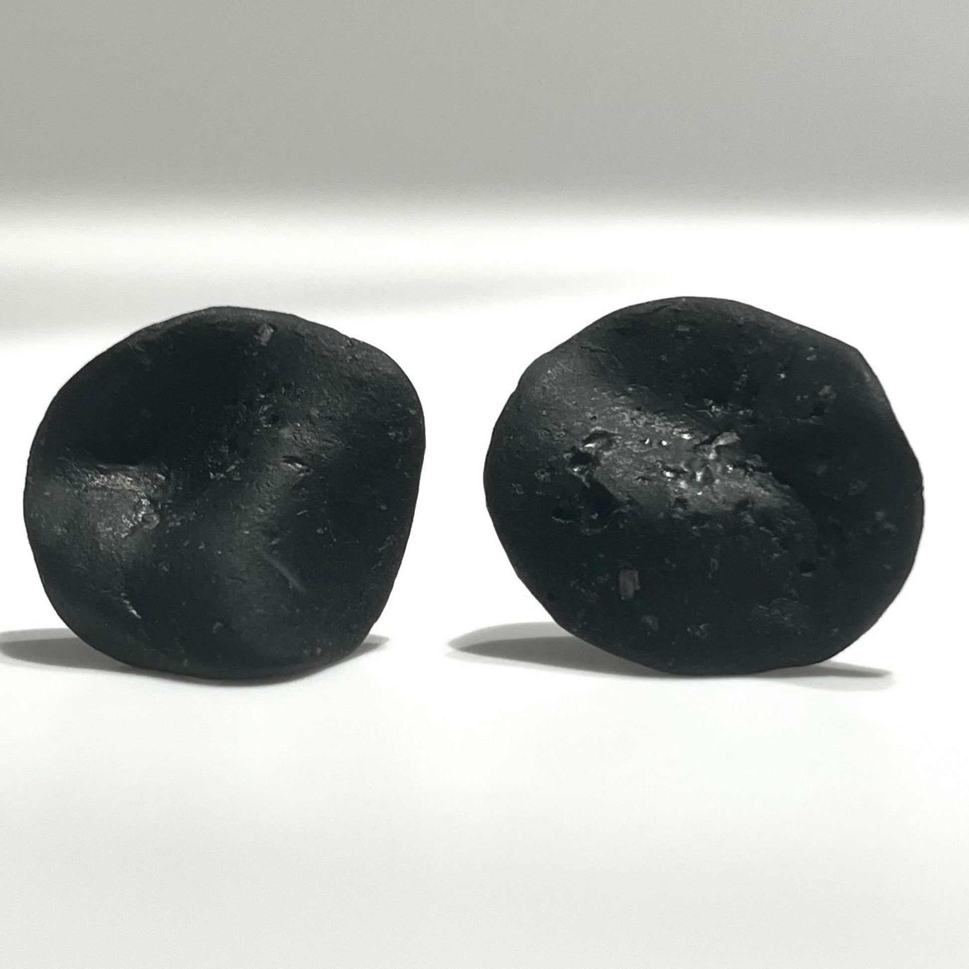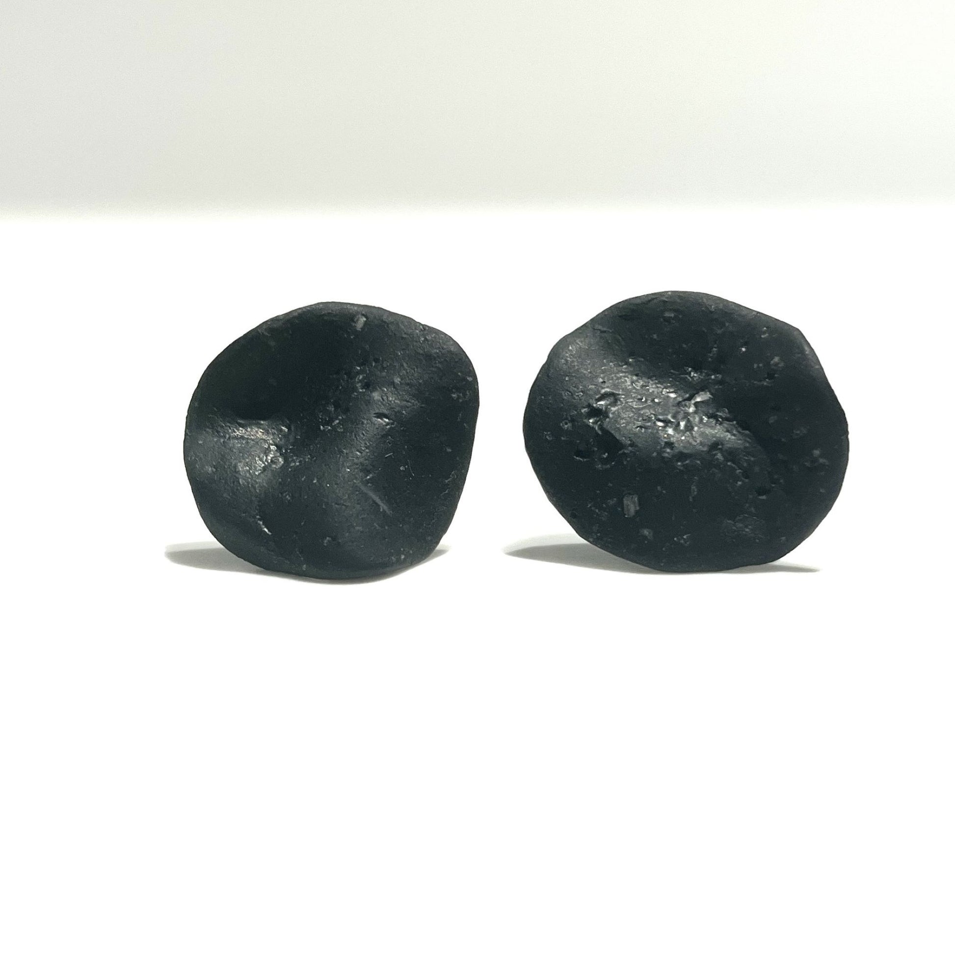 The Fradato Black Earrings stand out with their organic shape and subtle handcrafted texture. Their round design radiates a sense of balance and natural elegance, making them perfect for both everyday wear and special occasions.