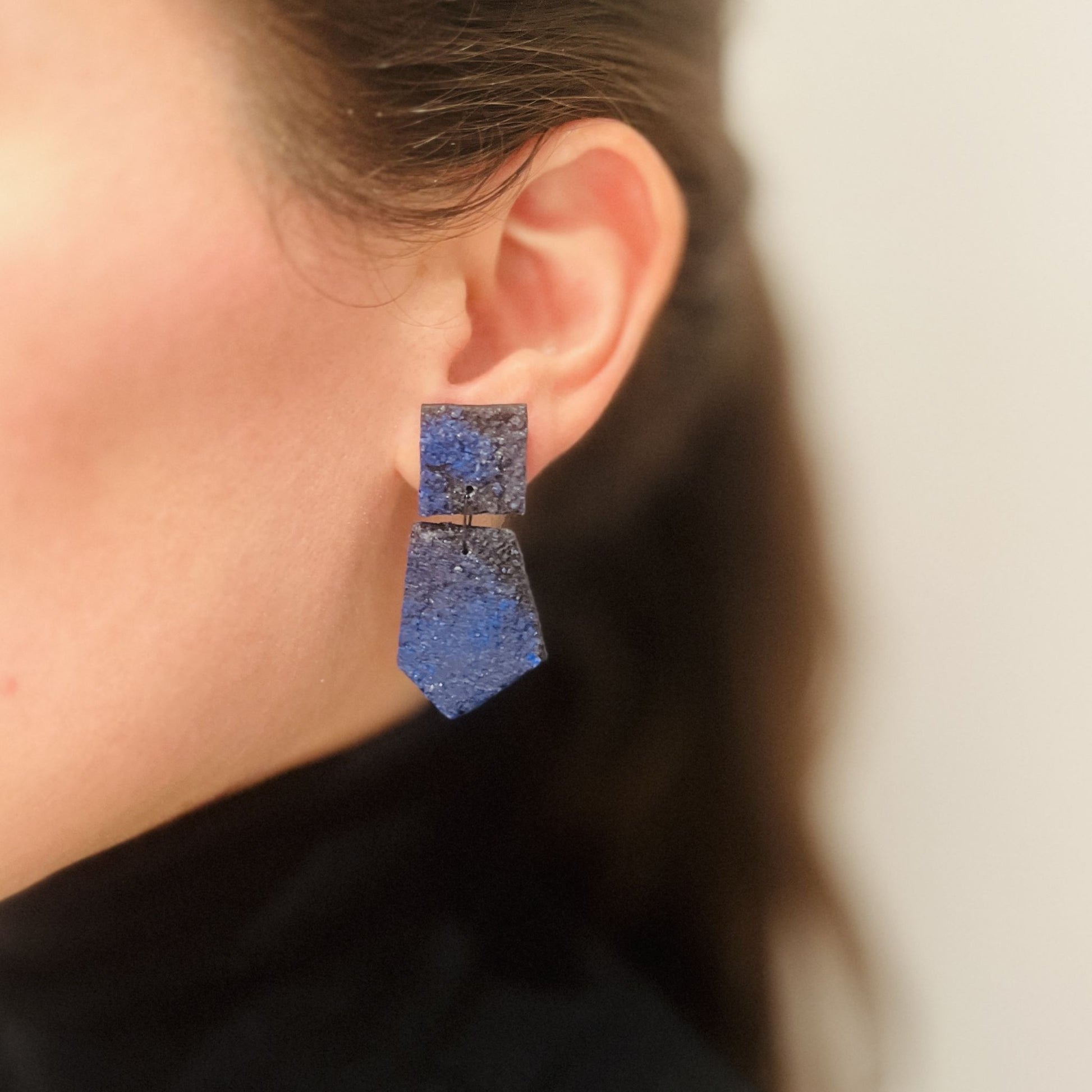 The Salis Black & Blue earrings are striking and bold, inspired by the natural beauty of crystallized textures. The harmonious transition between deep black and rich blue tones creates a dramatic yet elegant look, perfect for adding a touch of sophistication to your style. Their unique crystal-like surface is crafted with care, incorporating salt to achieve their distinctive texture and design. Dimensions: 4,5*2.8 cm
